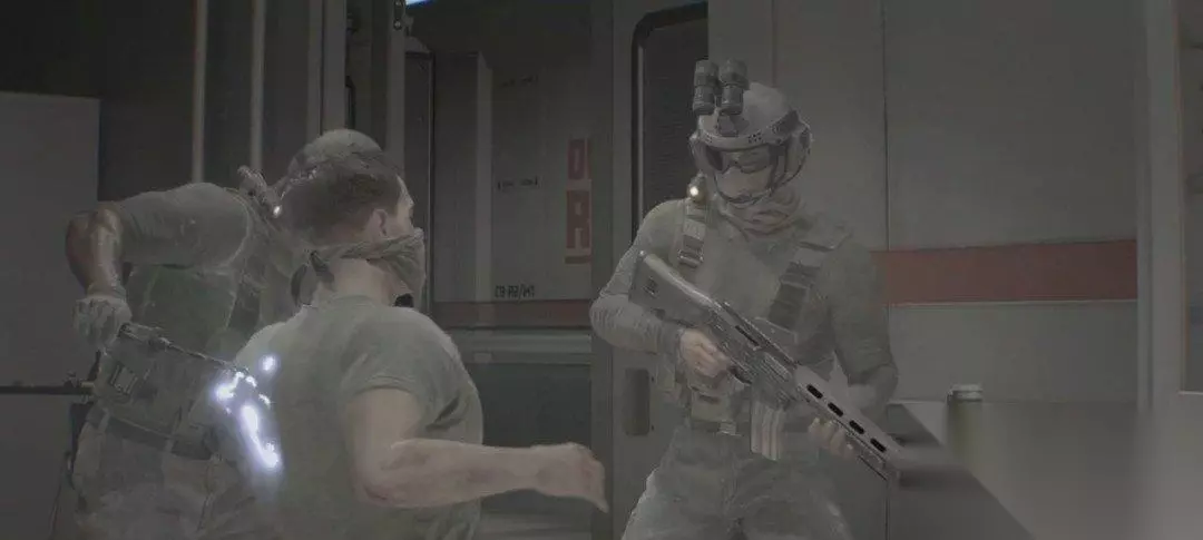 画面来到了第一视角。医生和我们说话的时候突然后面来了两个救我们的人,不过以失败告终。