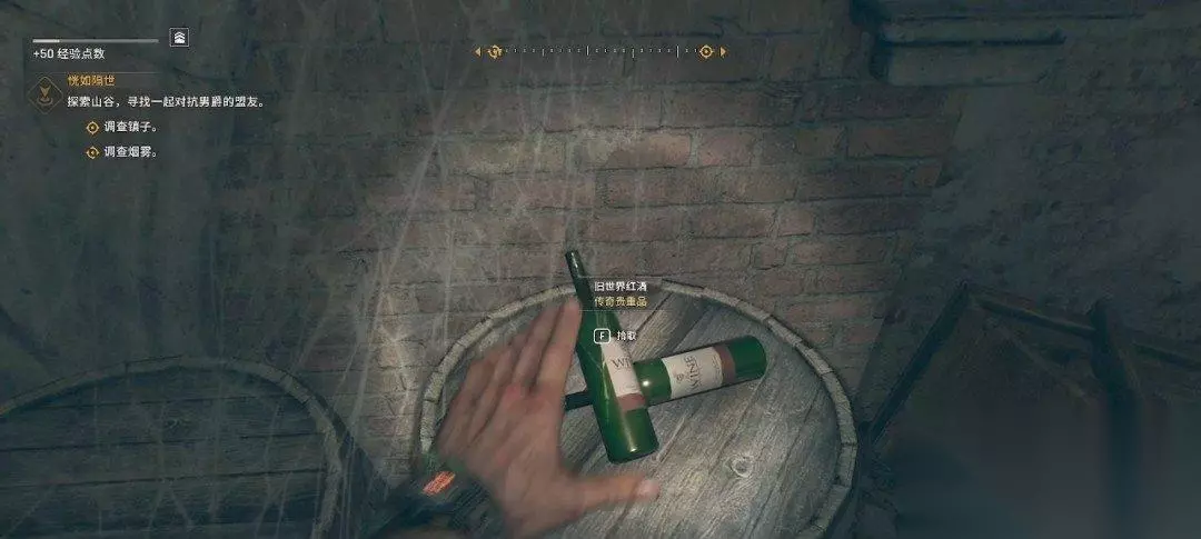 里面是个酒窖,里面能发现不少红酒(四瓶),品质是传奇的。
