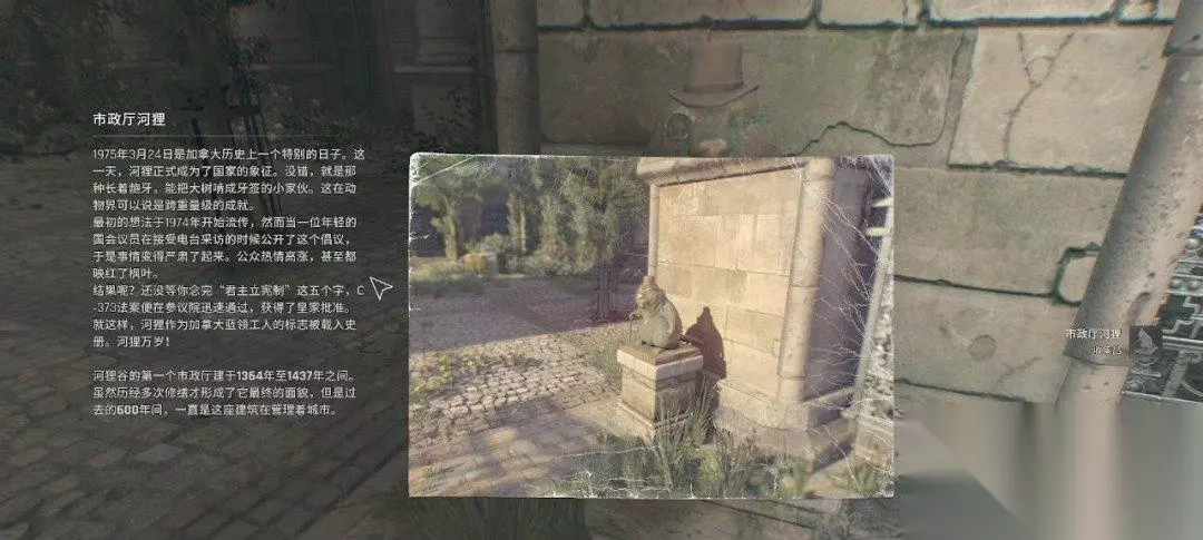 把这些丧尸处理掉后,我们钻出去,右手边能获得一个收集品,市政厅河狸(懒得杀丧尸的可以下次再来拿,我们还会来这里)。