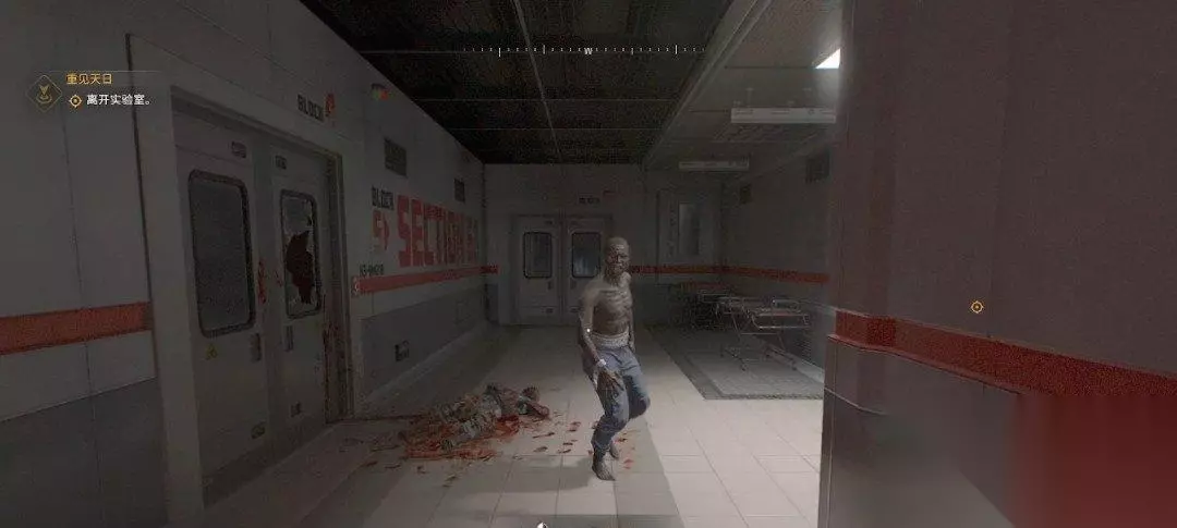 爬出来后,面前会有很多丧尸,这边女声推荐我们潜行,那我们就潜行。 C键是蹲,可以降低被发现的可能性,我们可以跟着血迹走。