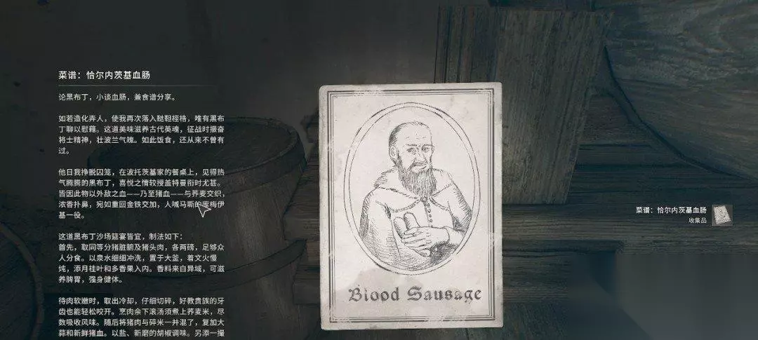 这个酒架上还有个收集品,菜谱:恰尔内茨基血肠。