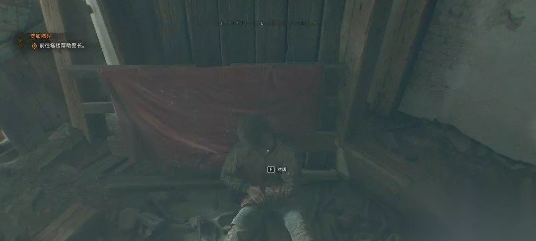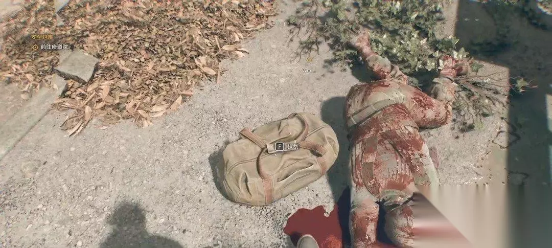 随后我们又被对讲机里面的女声叫醒,这时候可以开始操作了,我们爬到前面的尸体旁边,长按F拿上对讲机(设置里可以改长按或者点按QTE,长按比较方便)。