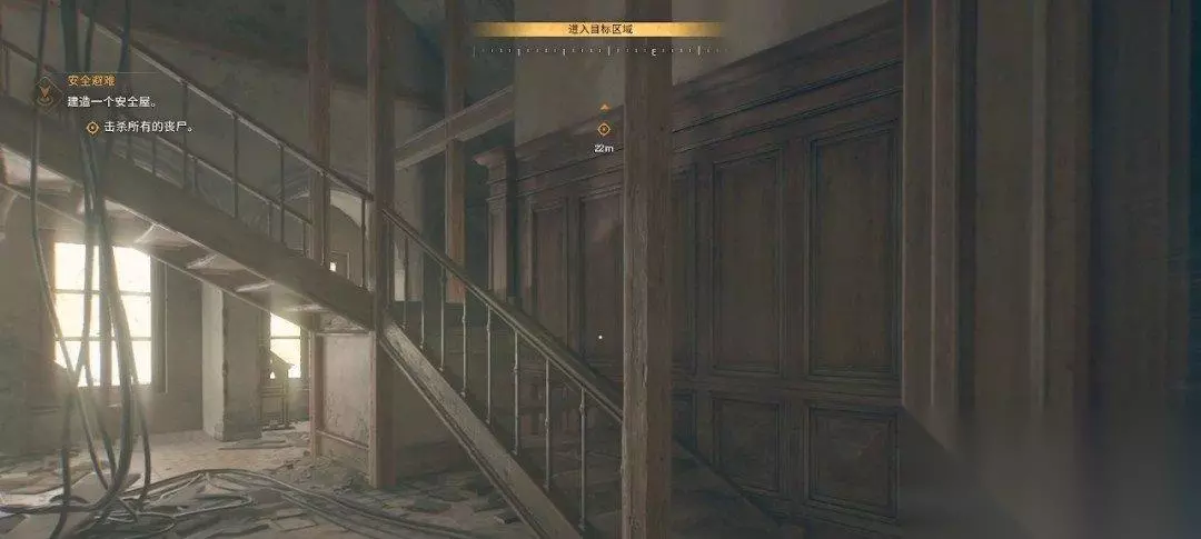 打开发电机后我们上楼。楼上一个背对我们的丧尸可以从背后偷偷击杀,不过实战用起来感觉不是很好用,丧尸很容易察觉到我们。