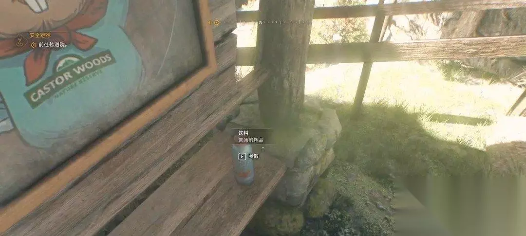 我们接着去右边的主路,主路的告示牌下面座椅上也有物资。