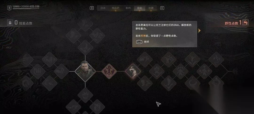 对话结束后我们获得了野性点数,野性点数可以用来升级野性能力,也就是我们变成怪物以后的技能。