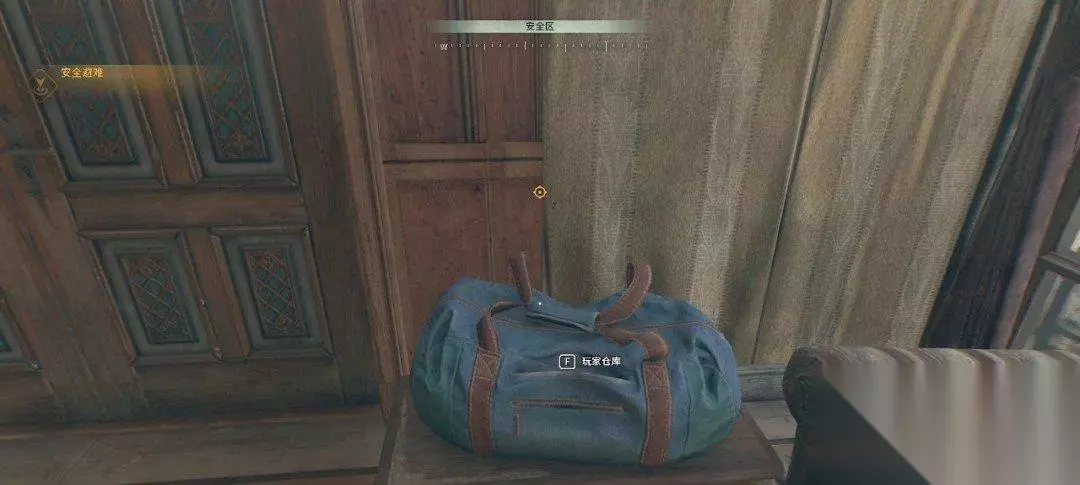 左边蓝色的包是我们的仓库,暂时没啥东西。右边的桌子上能获得不少东西,记得拿一下。