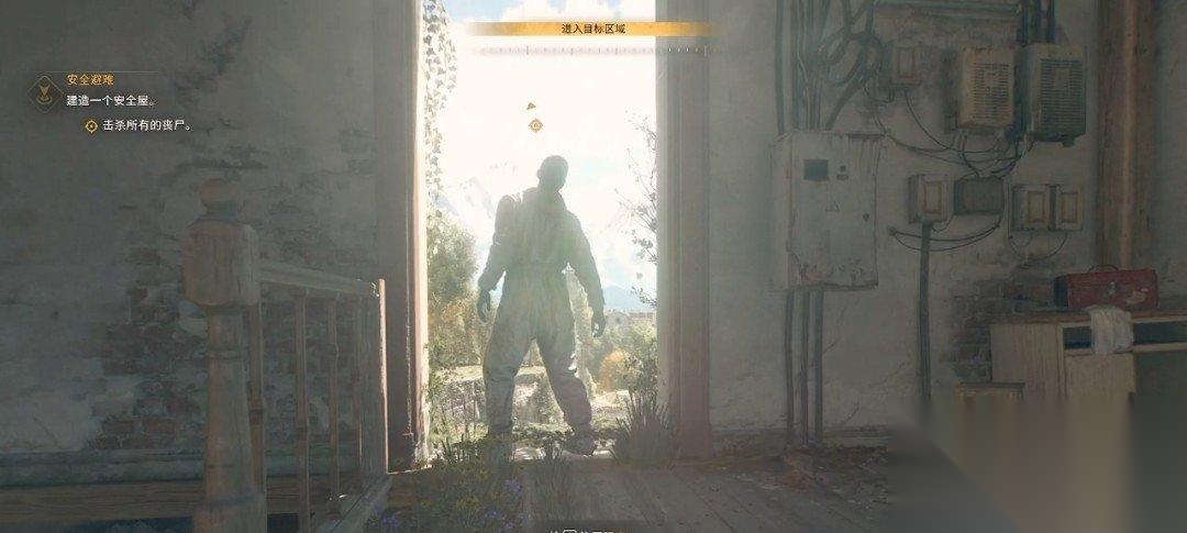走到目标点门口,系统会提示我们使用噪声诱饵吸引丧尸的注意力。按数字1可以切换到诱饵,长按短按都可以。