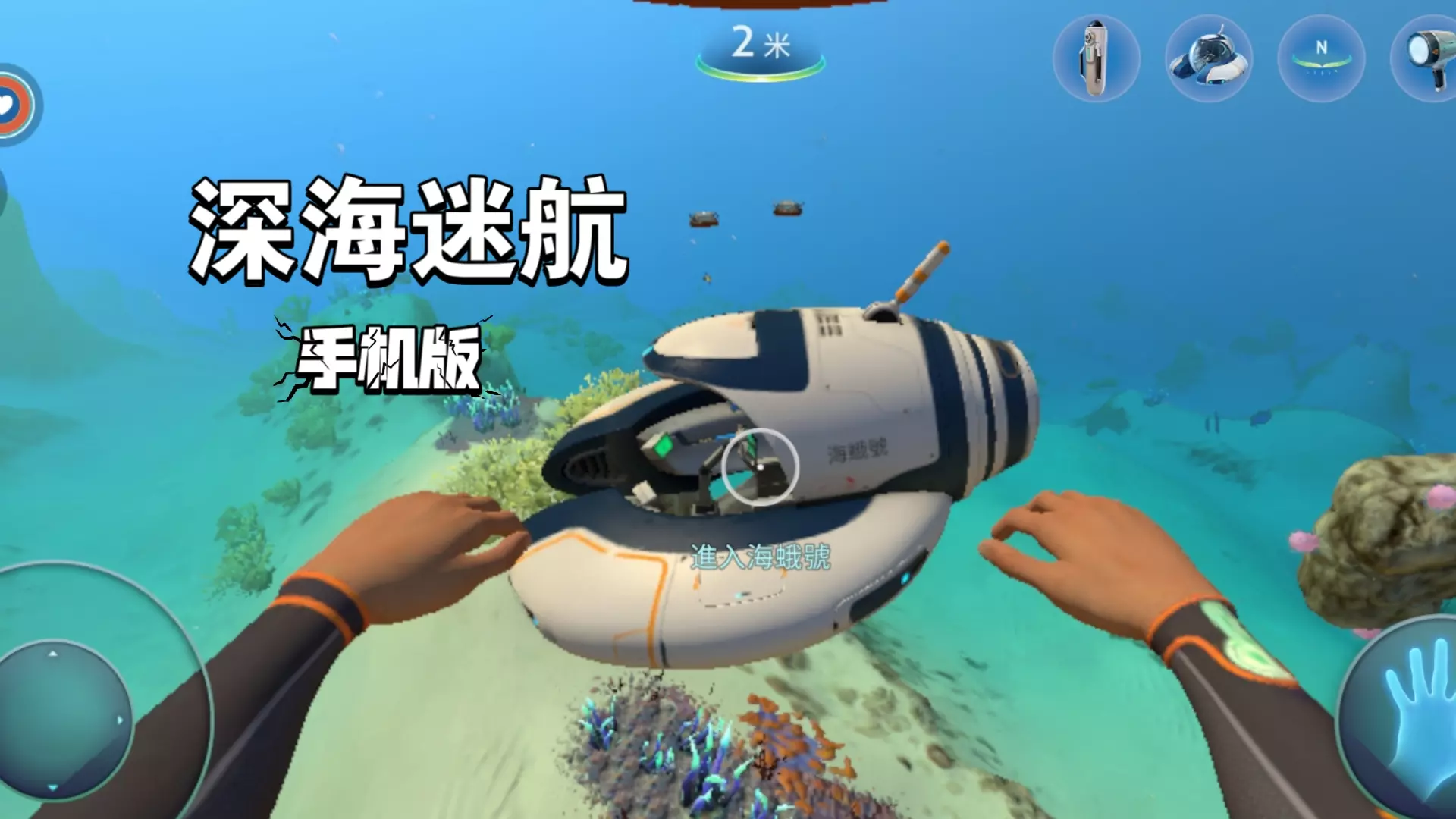 这是在iPad8上运行的沙盒游戏《深海迷航》手机版的游戏内容展示,呈现了游戏里的水下探索场景,玩家可在其中采集资源、驾驶载具,体验深海冒险。