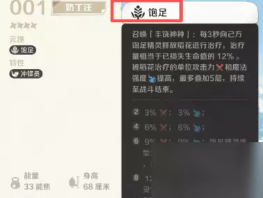 “饱足”属性实际上是属于后期属性,它可以召丰饶神,每三秒对己方的目标饱足精灵,释放一次治疗,同时,被丰饶神治疗过后的饱足精灵,不仅可以增加自身体型,其生命上限值,以及造成的伤害数值,也会跟随着同步提升。