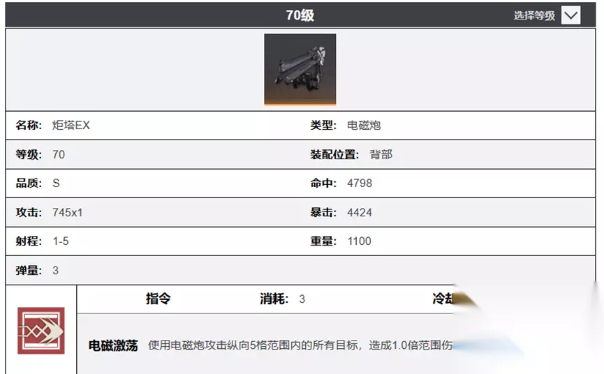 周年庆版本,钢岚增加了新的战术武器——浮游炮,这种新的战术武器与其他战术武器有何不同,又有什么独特之处,本文笔者为大家带来全面解析。 一、 射程机制解析 浮游炮射程为1-4,是所有战术武器中最低的,一改战术武器远程打击的风格,但射程的缺陷也为它换来了无视障碍的能力。障碍物对于其它战术武器的影响是巨大的,电磁炮受障碍物限制最大,低矮的障碍便能够阻挡攻击,肩部的火箭和导弹能够穿过低矮障碍,但依旧会受到如下方的高墙的影响。