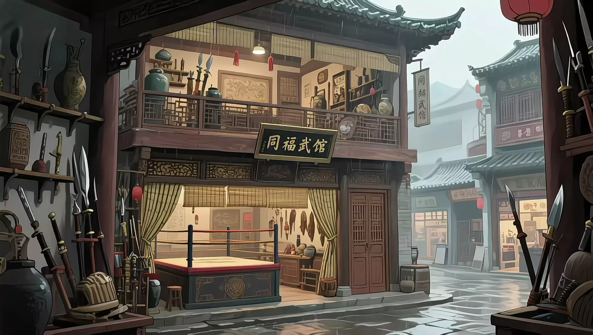 🌧️➕🗡️ 45分钟下雨天七侠镇同福武馆开业氛围 各位腐竹 走过路过不要错过~