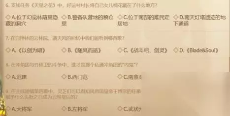 7、以下哪个是风之平原彩虹湖没有的怪物?:鬓毛棕熊。 8、游戏初期,道天风在竹林卫中担当的职位是?:竹林卫队长。 9、啸四海与洪门弟子告别后,是谁发现了躲在好运村的啸四海?:独孤剑。 10、以下哪位属于浑天教阵营:泰广。 11、在“扭曲的天目宫”副本赛季挑战中,获得第一名的称号叫做?:天空之上。 12、“tabtab666”指的是以下哪个职业?:“咒孙咒大海”---咒术。