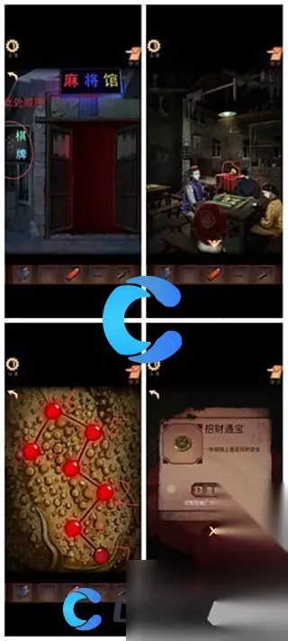 3、往回走获得葱和打火机,进入麻将馆。