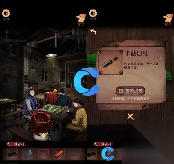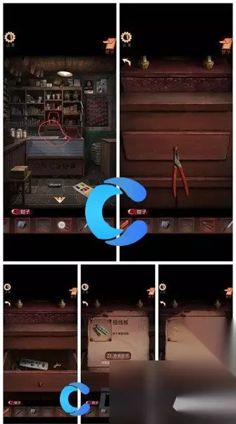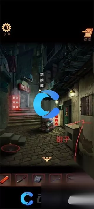 12、返回麻将馆,将烟给黑衣鬼打开柜子获得钳子。