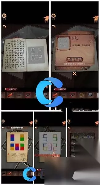 11、打开书获得卡纸,对着色块进行解谜获得密码85523,获得香烟。