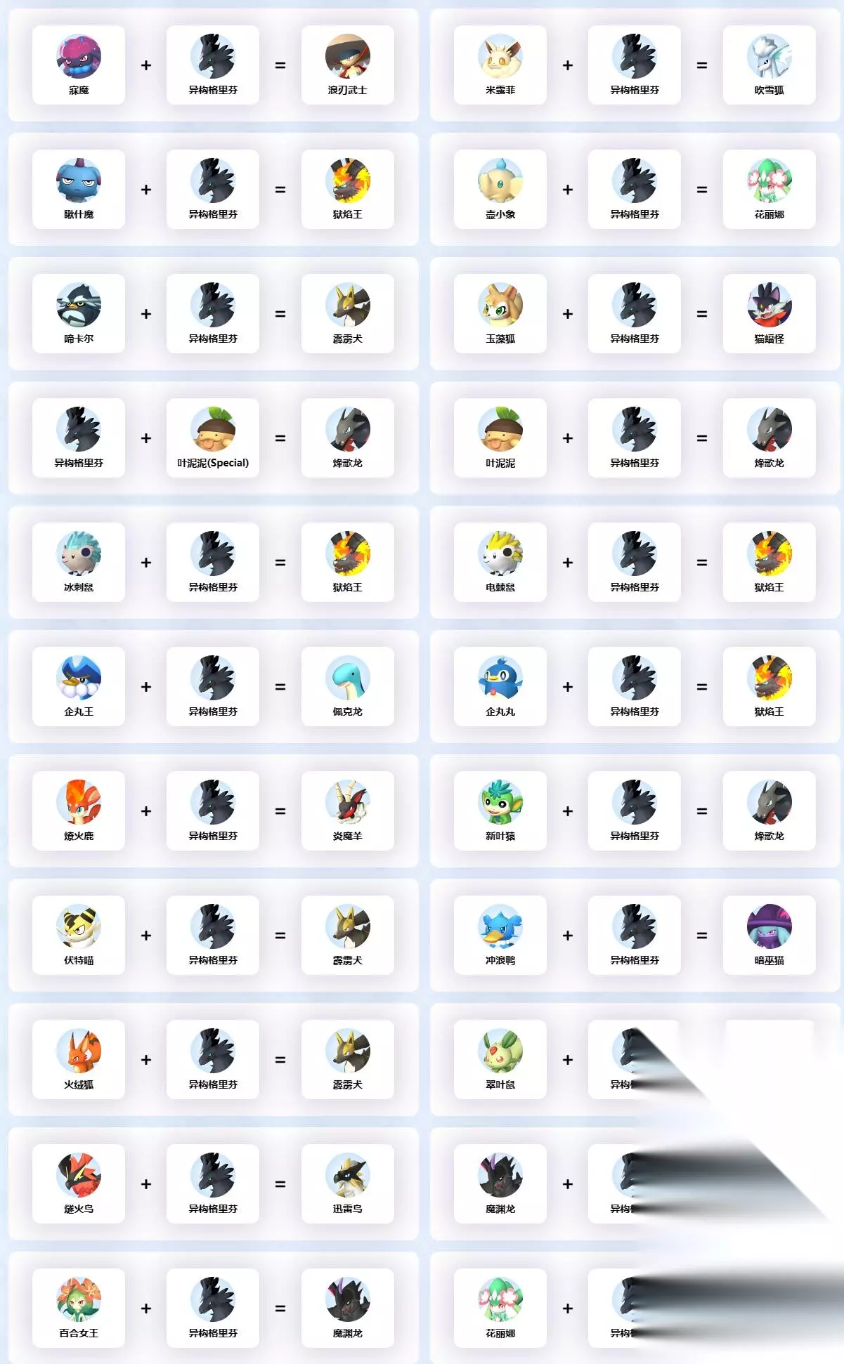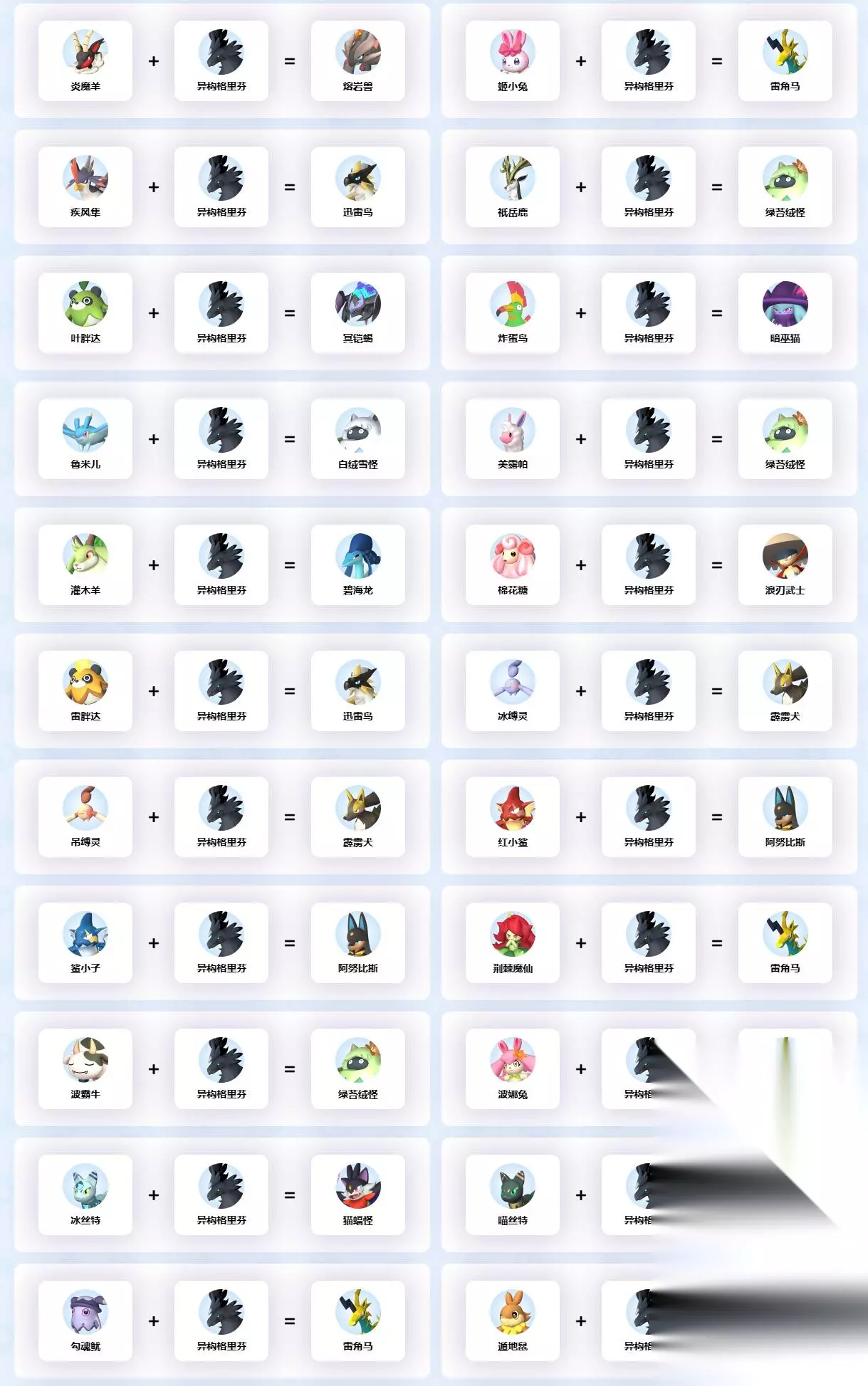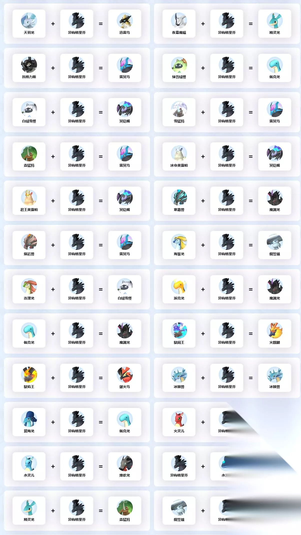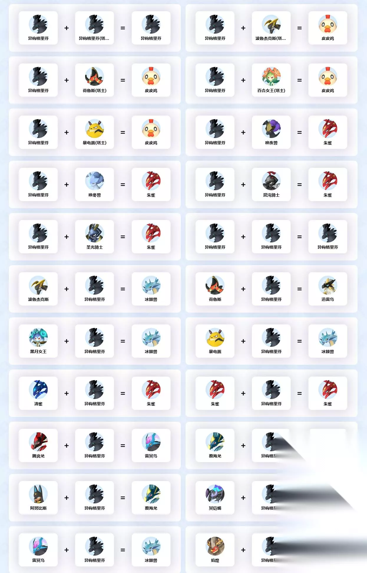 以上就是异构格里芬全配种公式大全一览的所有内容了,玩家可以根据这篇攻略对异构格里芬的各种配种进行搜索,希望可以帮助到大家。