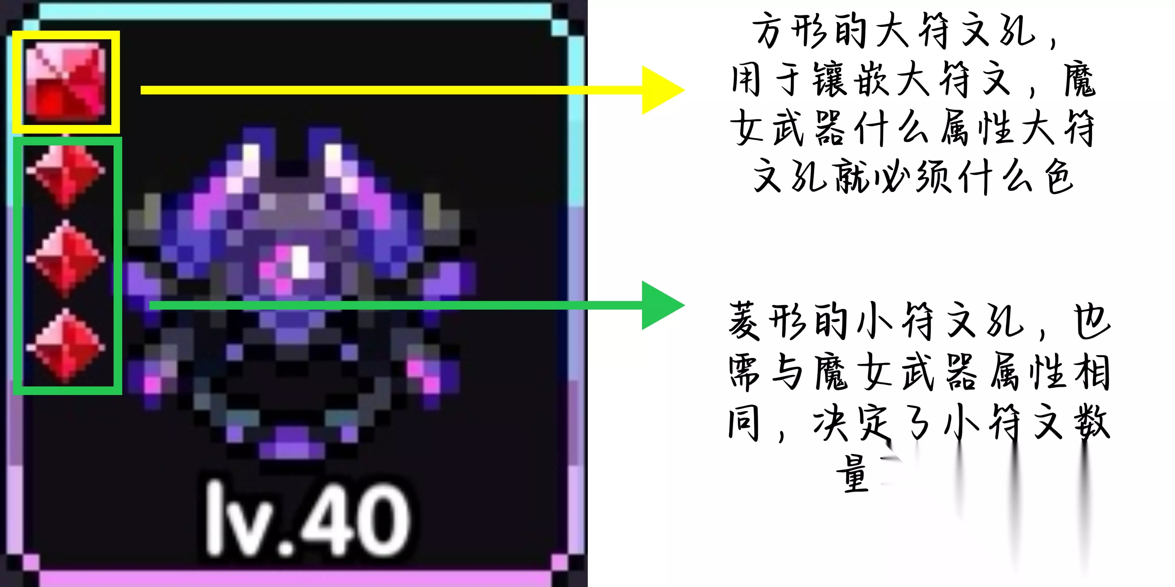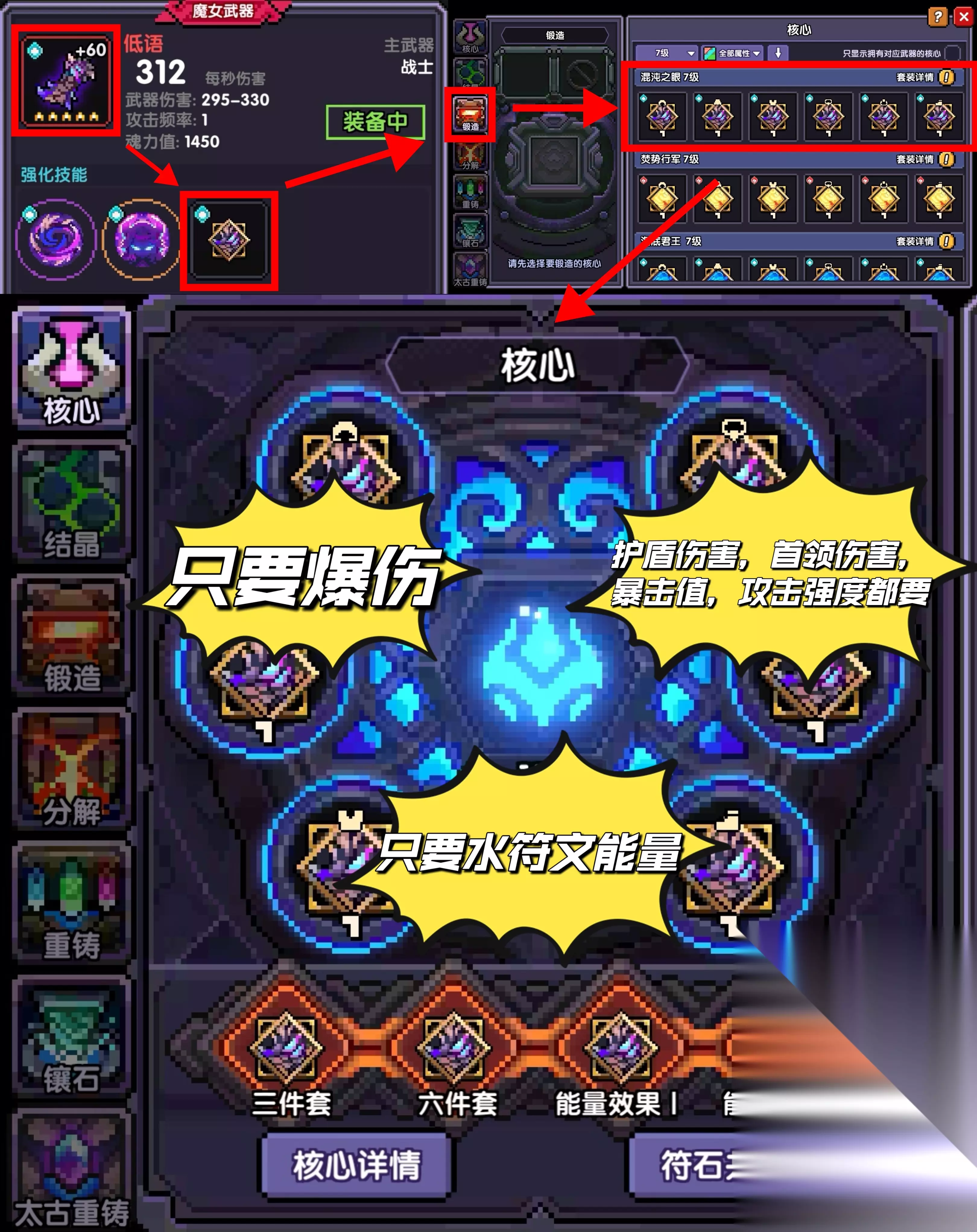 1、符文概述 符文分为大符文和小符文,在小秘境51层解锁。 每套大符文和魔女武器一一对应,是每一个流派核心组成部分; 小符文则是自动镶嵌,可以自行在其中灵活更换需要的属性。 2、大符文