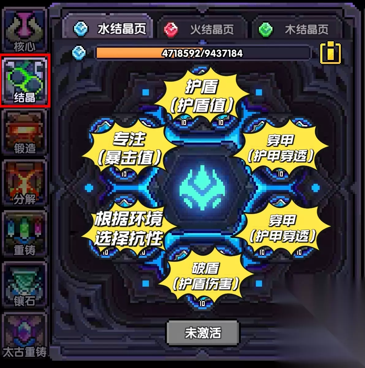 ①宝石聚合 放入任意属性9颗不一样的宝石,并平均进行升级、升星。 升级、升星方面只需要养这9颗宝石就可以一劳永逸。 ②宝石共鸣 将需要用的宝石放入,即可继承聚合区中间大宝石的属性。要用什么放什么就行。 【星盘】