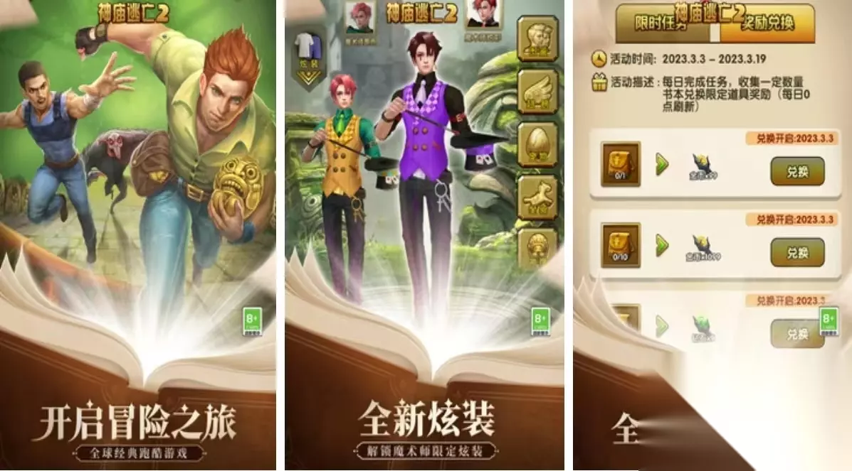 这是一款将卡牌、策略、鸽子等多种元素结合在一起的游戏,里面有很多漂亮的女角色,比如我们熟悉的“小红帽”。她孤身一人进入黑森林,就是为了找到自己唯一的家人,这是何等的危险?你将会发现黑森林的奥秘,你将会和那些想要寻找宝藏的恶魔一样,在这个过程中,你会发现很多稀奇古怪的事情,当你加入我们的队伍时,我们将会揭开这个神秘的世界。 扫码下载该游戏 高速下载 普通下载 优先233乐园APP下载 5、《神庙逃亡2》