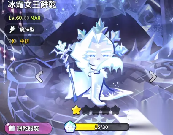 2.冰霜女王有着极强的控制能力,是冻结队玩法的核心饼干,可以和雪酪饼干配队,让冻结伤害大大提高,玩法不仅有伤害,还有各种debuff施加,牵制效果极佳。冰霜女王自己有个特性,拥有较高的冰冻抵抗效果,因此部分关卡推图中她是最佳选择。