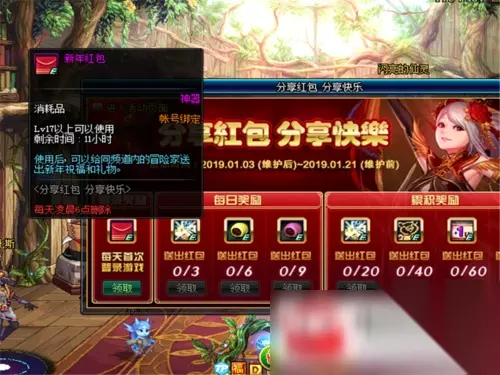 dnf分享红包活动怎么玩?新年到来,dnf给大家发红包了,分享红包分享快乐活动在新年开启,很多玩家还不知道怎么分享红包与获得红包,下面不知道的玩家一起来看看吧! dnf分享红包活动玩法技巧分享 我们在游戏当中,会看到这样的图标,当然不是一定有哦,不过保持在线,过一段时间就会有人发给我们的哦。