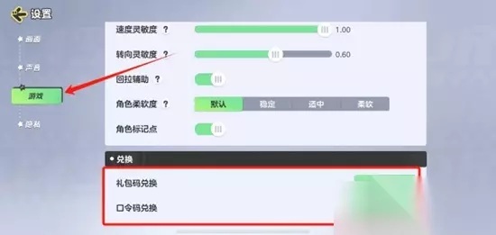 3、在设置页面里面选择左边的游戏一览,在游戏一览往下面滑,可以看到礼包码和口令码,大家点击对应的选型前往就可以兑换了。