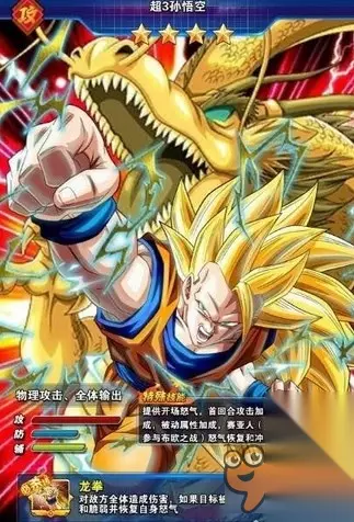 最强的奥义,龙珠激斗超3孙悟空战斗力解析,龙珠激斗超级赛亚人3是悟空以灵魂之体,在地府修炼跋涉蜕变而成的形态,尽管拥有星辰大海般的力量,但这种形态有时间限制且消耗能量过于巨大,所以不在生死攸关的时刻,悟空一般不会选择变身。在与魔人布欧激战时,布欧邪恶的本性和碾压般的实力,是一切生命之敌,为了给特兰克斯争取获得龙珠雷达的宝贵时间,悟空毅然决然的变身黄金狮子般的超三形态,力量强大到把布欧的最强状态压制的毫无还手之力。那么如此强大的超3孙悟空在游戏里又有什么出色表现呢,让我们来详细了解下。