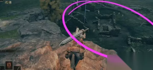 3、来到边缘向下面看,下方区域就是“封印魔女的废墟”,不用管周围的敌人,直接前往“地下室”