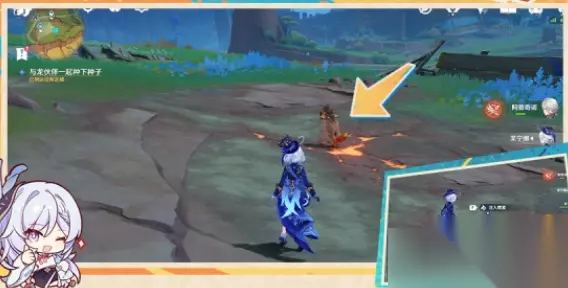 1、来到【隆崛坡】西南侧的空地,靠近这3个坑,让龙伙伴挖掘;