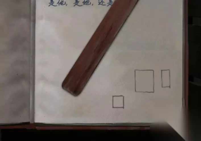 在柜子右下角格子拿到一张照片,第三格的左边拿到一只假眼球,右边书上第一页重点祖师爷需要三件物品木匠工具、戏曲物品、没脸面具,第二页重点是右下角的三个框框形状,第三页右下角也有都要记一下,第三页还能拿到一个木制书签。
