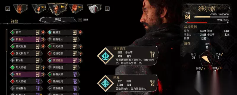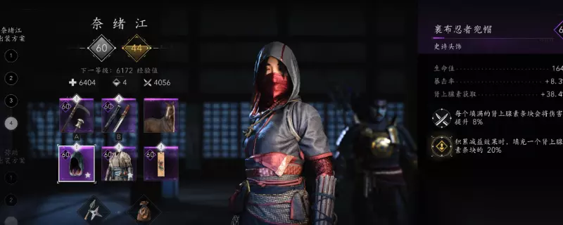 《刺客信条:影》中的配好装非常重要,然而很多玩家不知道出血爆伤流怎么配装,首先,主要输出手段就是锁链的两个能力:野性爆发和旋风冲击,这两个能力都是多段伤害能够保证大概率触发爆伤同时配合能剧大师面具的词条保证肾上腺素一直是满格状态。