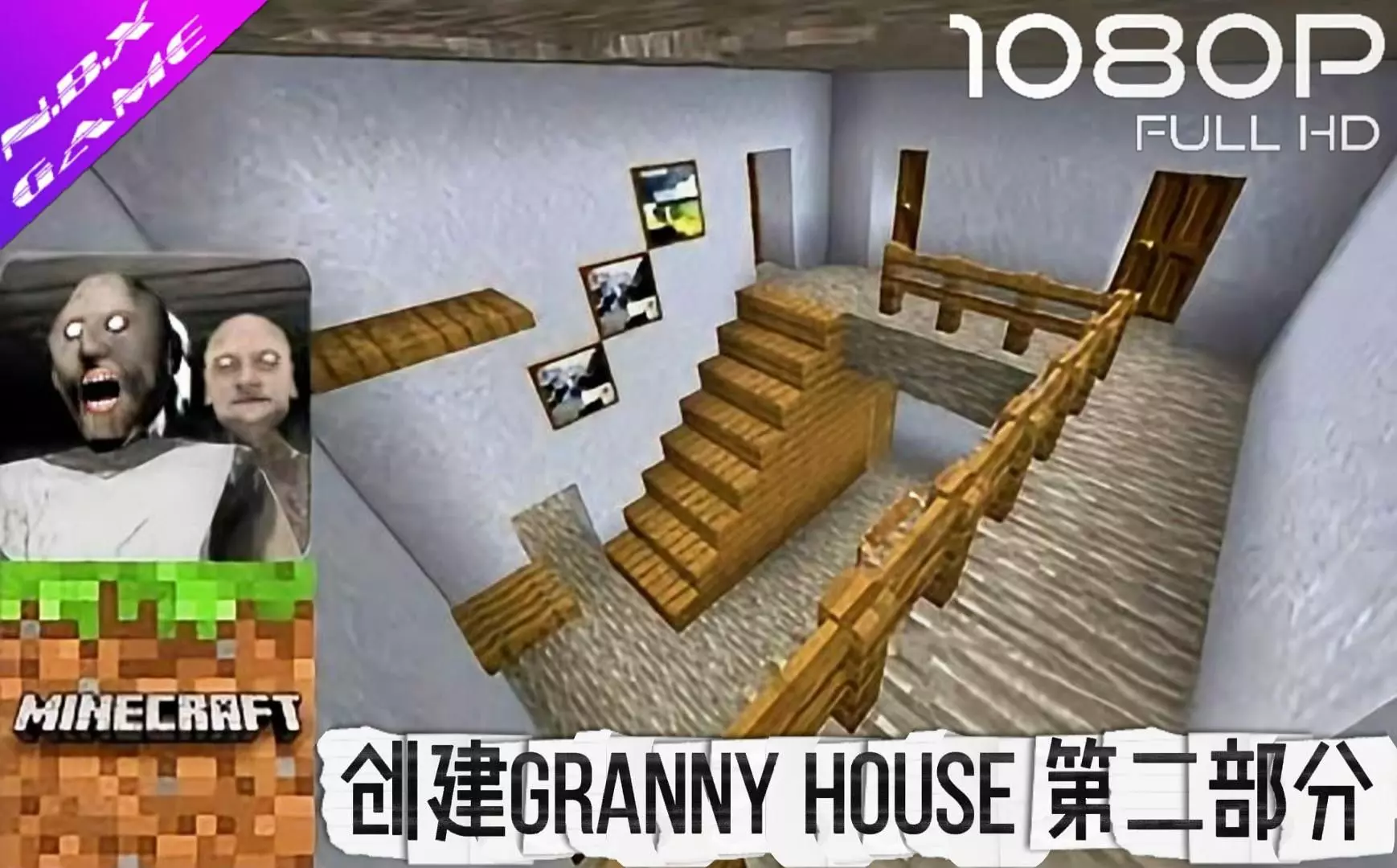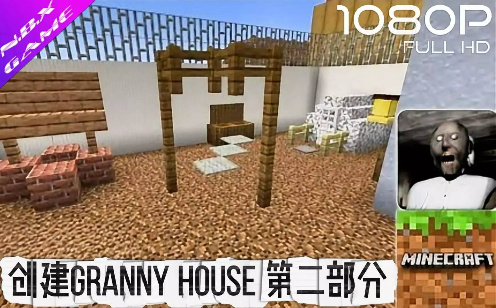 这是一则主机游戏内容,以第一视角展示在《我的世界》中搭建GRANNY HOUSE的第一部分过程,呈现了房屋从基础搭建到部分成型的建造画面。