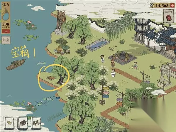 江南百景图杭州探险钱塘门宝箱位置一览: 1、宝箱1