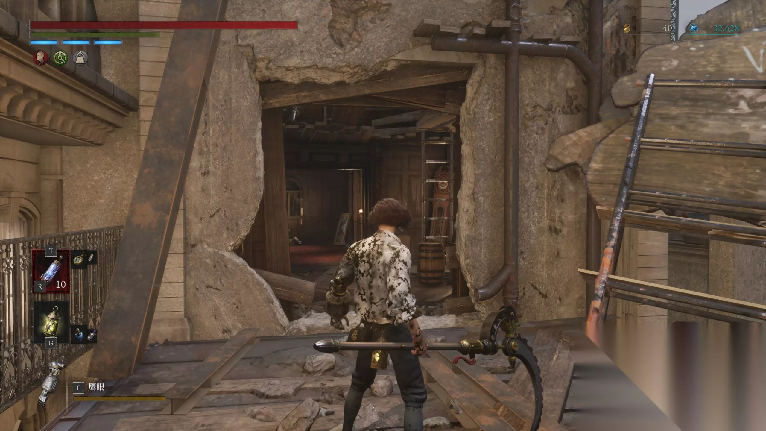 5.追迹者的承诺 在维尼尼工厂中推进,一定会来到下图场景(有两个重要NPC),沿图中右侧上楼梯后直行。