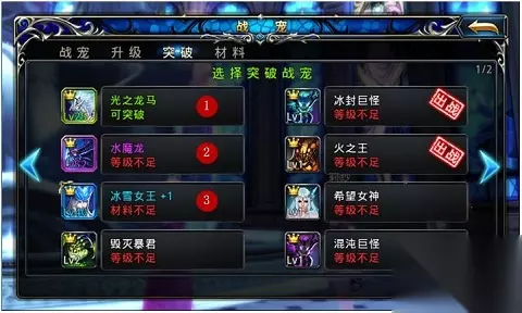 t15_2-t15_1:6.0 标签: 符文 点击选择突破战宠,在战宠列表中寻找需要突破的战宠,点击名称进行突破