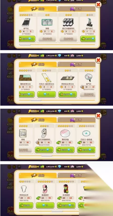 在烹饪冒险里,煎饼屋的完美通关在很多玩家眼里相当有难度,其实五星只要掌握一定方法还是蛮轻松的。下面就为大家带来详细的攻略介绍,一起来看看吧! 煎饼屋五星通关攻略 好多人说难玩,可能是我升多了所以没觉得多难,反正第二条街都是手忙脚乱的,你们可以根据自己情况减,要是钱多就这样升,满星肯定是没问题的,话说第二条街真的好费钱,第一条街收的租金只够升几个就很慢没买衣服,买了宠物,图片放不下,延长营业时间各升了一个。