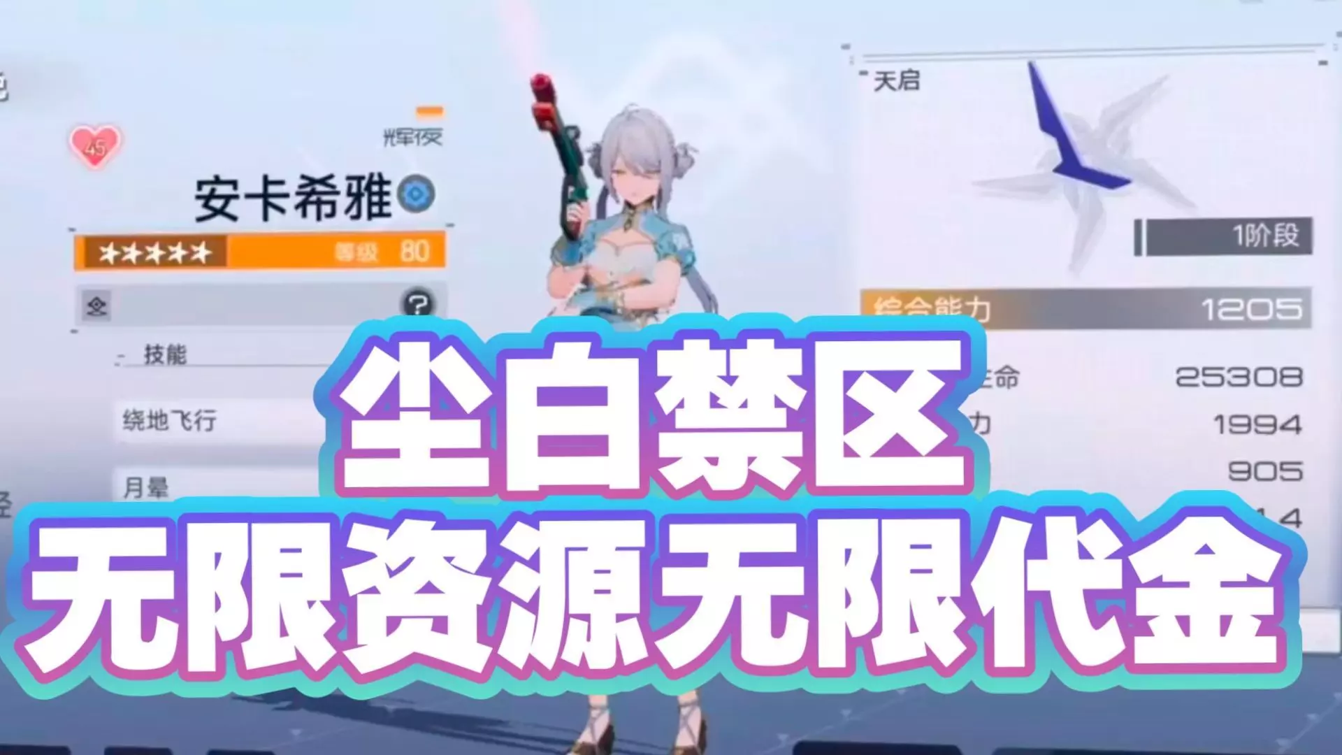 这是游戏《尘白禁区》赛博畅玩版的相关分享,展示了安卡希雅、里芙等满级角色的面板属性与技能,用户可私信发送关键词“尘白”获取相关链接。