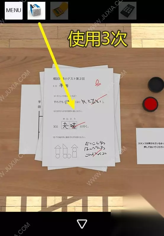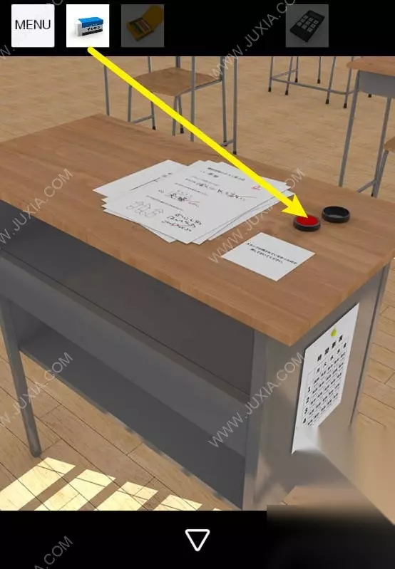 20、点击讲台,对桌子上的印泥使用图章。20