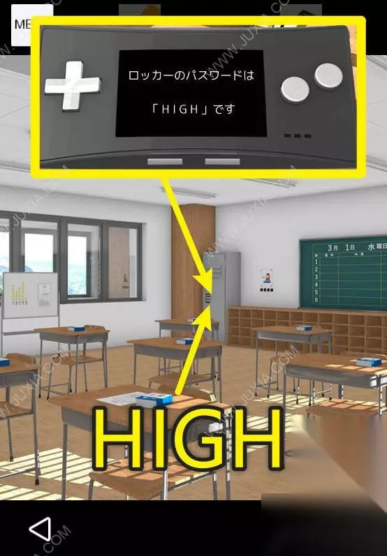 26、到白板场景,在柜子上输入HIGH,拿走红色粉笔。26