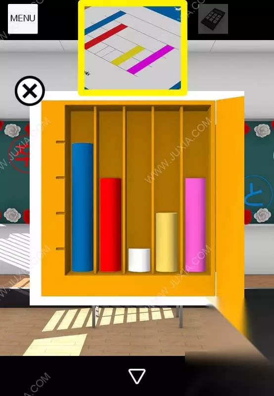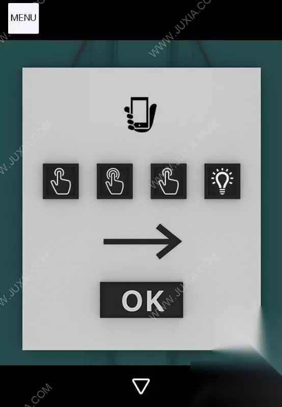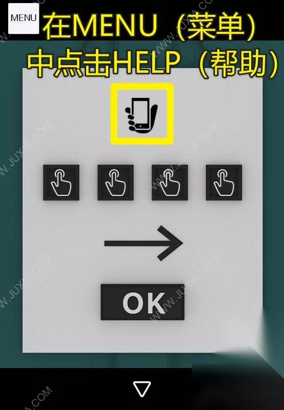 31、根据密码锁上的提示,在菜单里点击HELP帮助,观察每句话对应的图案,最后根据图案调整密码锁,点击OK,打开门出门即可通关。31 31.1