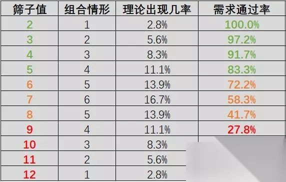 与被动检查点略微不同的地方是,主动检查点想要获得通过,不但要受当前技能点(天赋,服装,道具,状态等)的影响,更会受“修饰值”和“筛子值”的影响。 这样看来,出现在主动检查点上的那个百分比就能体现出你需要掷出的骰子点数。 双骰点数几率参照表