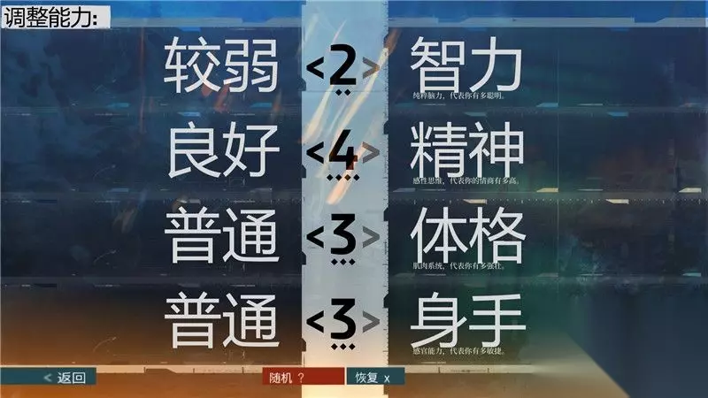 «12345678910»友情提示:支持键盘左右键"←""→"翻页 2. 生命值,士气值,经验值和等级 主角的生命值和士气值分别由“体格”和“精神”的天赋属性值决定。 这两个数值直接影响着主角生命安危,无论是生命值还是士气值,当降到0以下时,游戏宣告结束。
