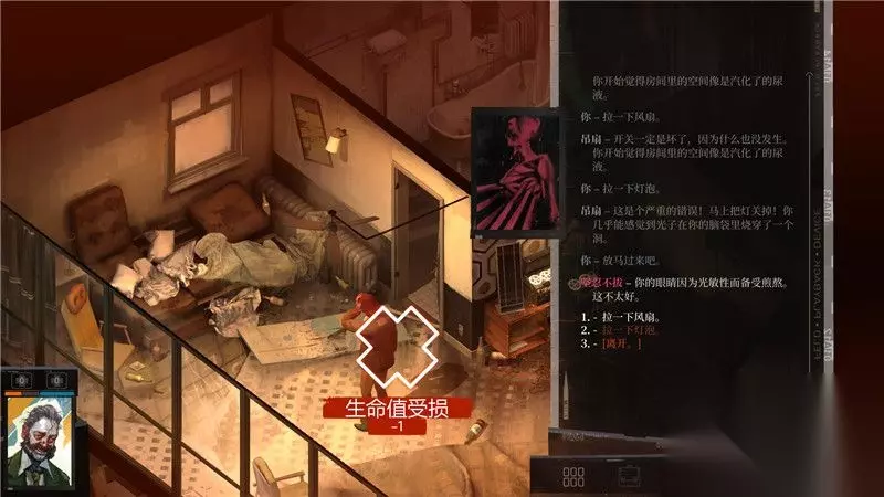 在整个游戏冒险过程中,你会在很多场景受到伤害。 例如撞门或其他危险动作等,这样你的生命值会减少。 通过使用药物可以恢复生命值,这些药物一般位于隐藏的皮箱位置。