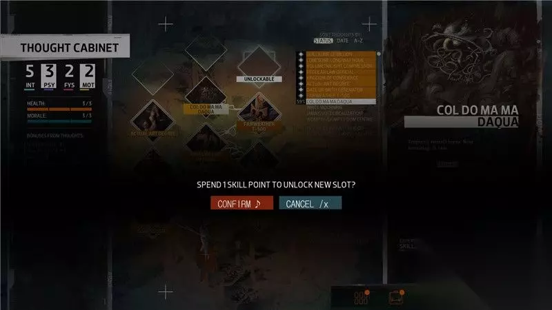 你可以通过花费技能点,解锁更多的思维阁槽位,这样有助于你同时进行多个思维研究。 同时,消耗技能点还可以抹除一个你不再想要的思维。 你还可以暂停对某种思维的研究而专注于研究另一种你想赶紧获得的思维。