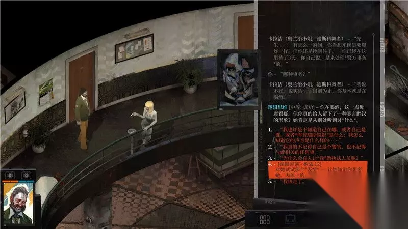 另外一种检查点叫做主动检查点,主动检查点一般会出现“技能点通过提示”。 把鼠标悬停在这些技能检查点的选项中,会出现所使用的技能以及通过的概率。