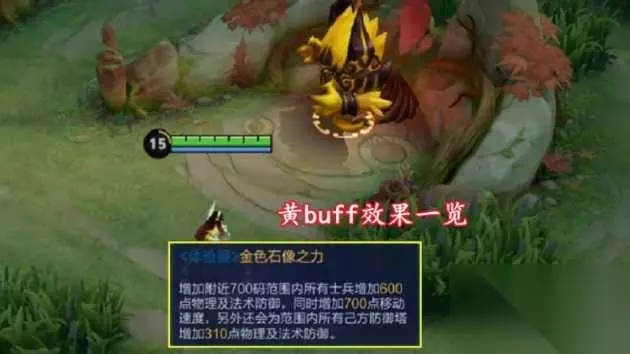 很多人就好奇这个黄buff到底有什么功能,在介绍中可以看到,拥有这个buff之后,700码范围内所有士兵都会增加600点双防,并且还会同时增加他们700点移动速度,还会为范围内的自己方防御塔提供310点的双防,看起来好像对自己没有增幅,而是加强小兵了。