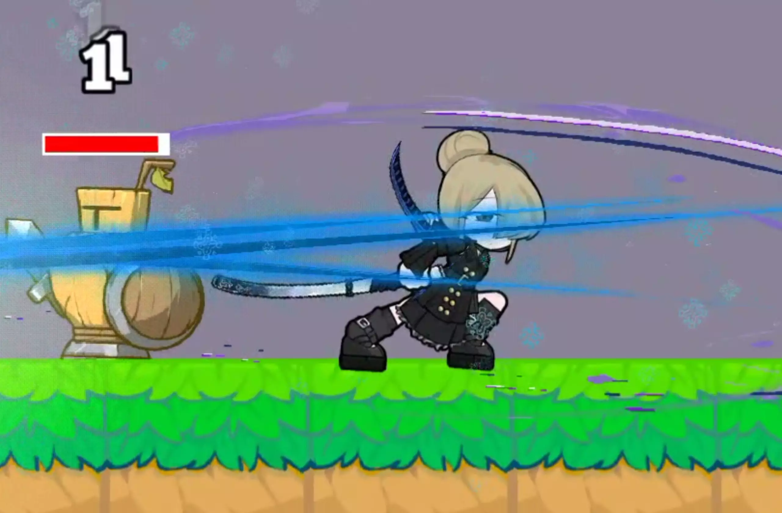 这是用创游世界制作的《地彗星》游戏内容展示,呈现了持剑角色与敌方单位的战斗画面,角色可释放不同技能攻击敌人,画面中能看到技能特效、攻击数值等战斗元素。