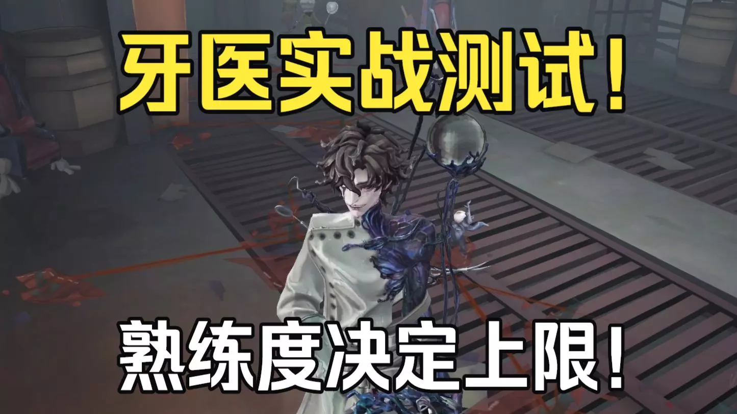 这是第五人格共研服中监管者牙医的技能演示,该角色拥有范围伤害技能,其二阶技能能给求生者带来强力减速效果,还可通过透镜技能传送至光照区域,普攻等操作无法转视角。