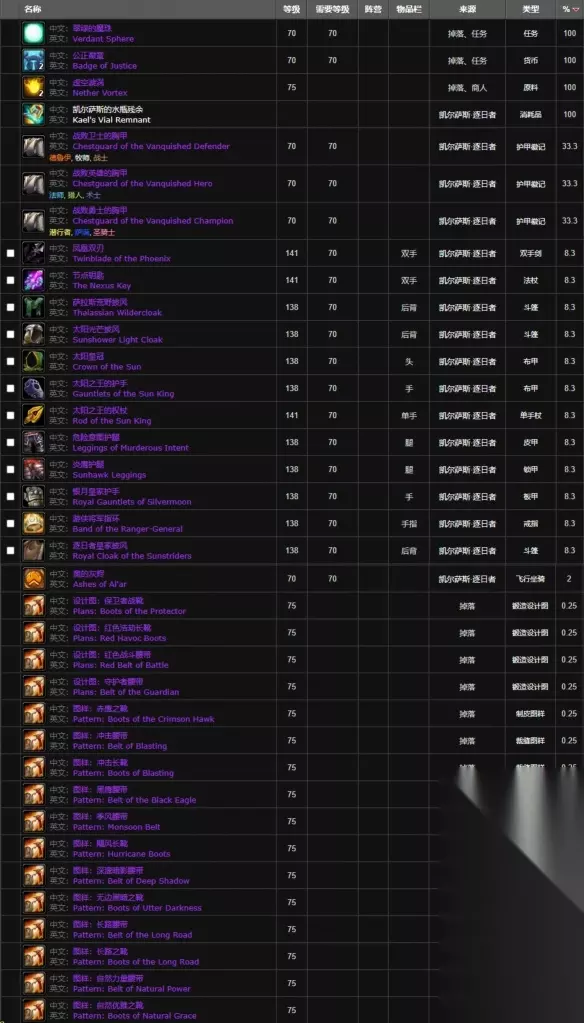 (点击图片查看实际大图) 3、凯尔萨斯·逐日者到了 会掉落翠绿的魔珠、公正徽章、虚空漩涡、凯尔萨斯的水瓶残余等装备。