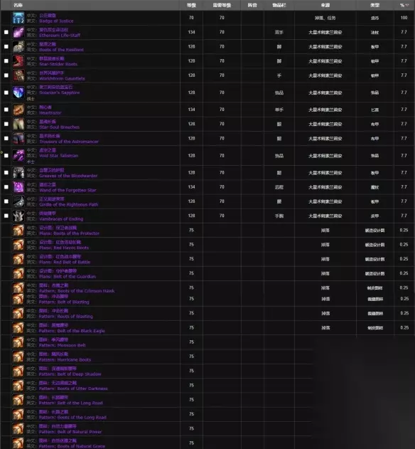 (点击图片查看实际大图) 2、大星术师索兰莉安掉落 会掉落公正徽章、复仇军生命法杖、复原之靴、群星旅者长靴等装备。
